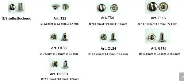 Wir sind in der Lage für Sie sämtliche Druckknöpfe, Nieten und Oesen auf fast jedes Material anzubringen.